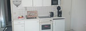 Unsere sonnige Wohnoase umfaßt einen hell gefliesten Wohn-/Schlafraum mit kleiner Einbauküche und einem modernen Bad.